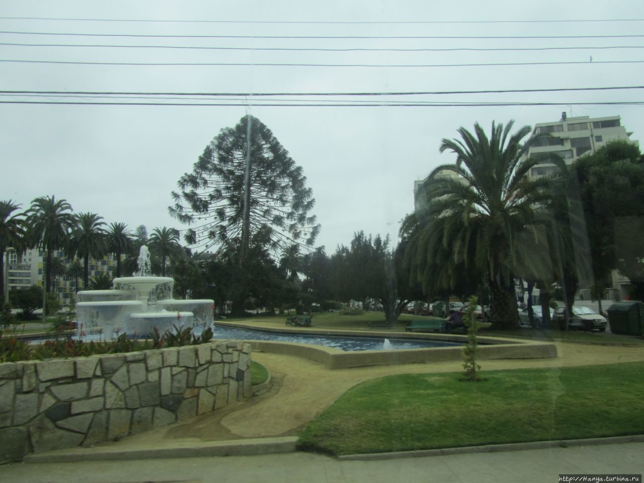 Сити-тур по хаотичному и эклектичному Вальпараисо. Ч.22) на сегодня был соседний город-курорт на берегу Тихого океана — Винья дель Мар. Этот цветущий город-сад признан туристической столицей Чили, а его побережье называют чилийской Ривьерой, при этом, как и западное побережье США вплоть до Калифорнии, оно в Чили практически не пригодно для купания. Холодное течение Гумбольдта, идущее от самой Антарктиды, омывает побережье Латинской Америки, делая его совершенно не подходящим для водных процедур в любое время года. И если мы, жители огромной страны, где в большинстве районов бывают суровые зимы, стремимся к морю за теплом и ласковой волной, то у чилийцев другая забота – уехать от зноя к прохладе. Так и начиналась история этого городка, куда богатые жители Сантьяго и Вальпараисо устремились, начиная с конца 19 века в поисках летнего отдыха. Вот и сегодня в перевернутом для нас мире Чили курортный сезон здесь достигает своего пика летом, особенно с декабря по февраль (как звучит: лето нашей зимой!), когда в Винью устремляются тысячи чилийцев, заполняя песчаные пляжи. А еще здесь, как и у нас в Сочи, нашли свое пристанище Международный фестиваль песни и кинофестиваль Винья дель Мар, первый в Латинской Америке.Как по заказу, погода налаживается, и сумрак уступает место солнечному дню. Даже не зная испанского, можно понять, что название города означает «виноградники на море» и попадаем мы в него, следуя береговой линии океана вдоль линии наземного метро.