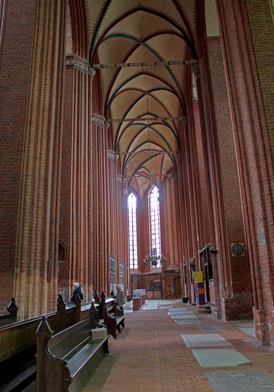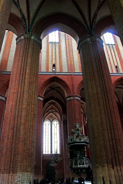 Неф высотой 37 метров получился 4-м по высоте в Германии вцелом и вторым (после своего прообраза из Любека), сделанным из кирпича.