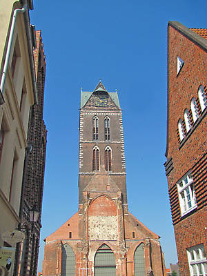 Город восхитителен в теплое время года. Можно опустить всю бутафорию туристического фарша из музеев-выставок и просто пуститься в пляс по магазинам и кафетериям центральных улочек. Но, если вы такие же зануды, как и я, то начать, пожалуй, стоит с церковного хода по местным храмам. Я не числюсь студентом ни в одной духовной семинарии и не являюсь поклонником крестовых походов. Просто церкви здесь действительно великолепны и являют собой топ достопримечательностей Висмара. Хотя, может, многие и предпочтут сначала оглянуться по сторонам на самой центральной площади. Но к площади я вернусь позже. В мой второй визит.