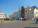 Первый визит был приурочен к погожим денькам Мекленбургских земель. Был июль. Солнце лукаво метилось своими яркими лучами прямо в переносицу, а город светился и подмигивал тебе, весело отражая нападение солнечных зайчиков. Насыщенные гранатовые оттенки кирпичной кладки характерно выделялись на беловато-серой подложке многовековой брусчатки. Голубое небо давило авторитетом, создавая шикарные фоновые заставки для отреставрированных старинных разноцветных построек.