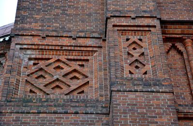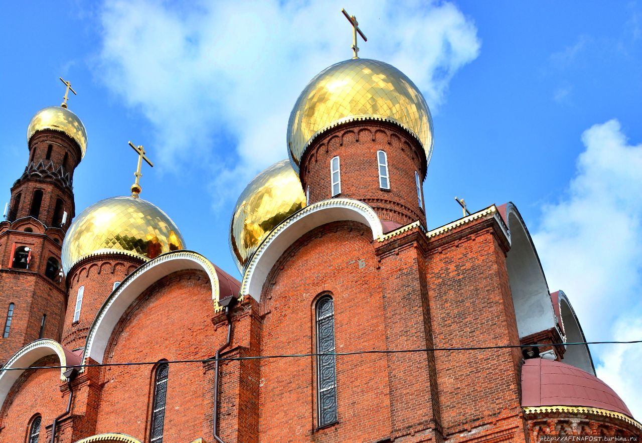 Монументальное здание пятиглавого собора выложено из красного кирпича без белокаменной