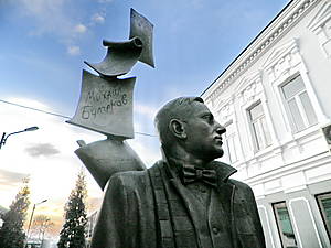 Совсем недавно, примерно за неделю до моего приезда, во Владикавказе был открыт памятник русскому писателю, драматургу Михаилу Булгакову. Установлен он на пересечении улицы Маяковского и проспекта Мира. Автор — Вячеслав Тавасиев.
