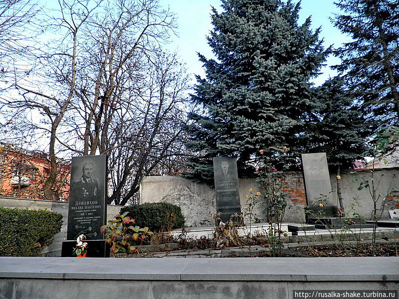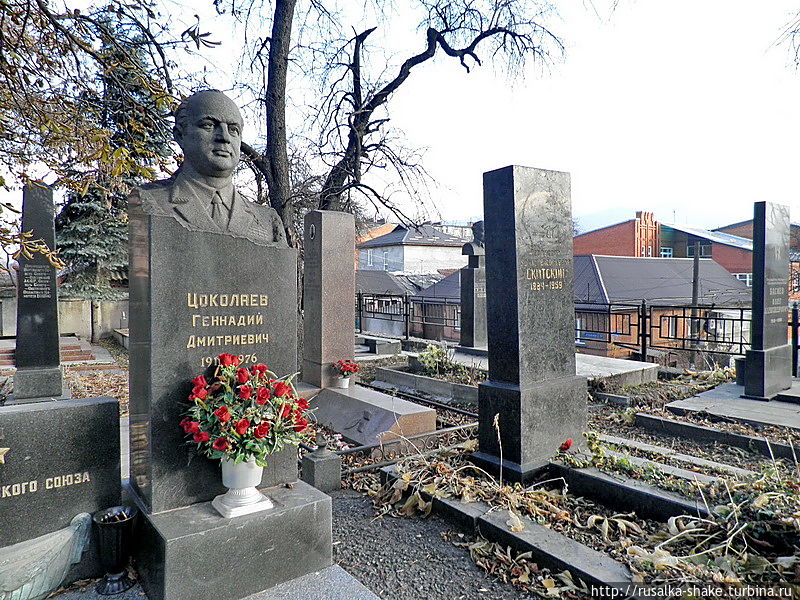 Весь мир - мой храм, Любовь - моя святыня В советское время церковь едва избежала участи остальных владикавказских храмов. А могилам повезло меньше. Большую часть кладбища снесли и построили на его месте школу № 13, другие могилы разрушились, так как церковь была закрыта и превращена в склад. Были утрачены могилы генерала Левковича, генерала Петра Нестерова, генерала Арсения Таучелова, полковника Василия Хетагурова, князя Михаила Туманова, священников Алексея Колиева, Михаила Сохиева и Алексея Гатуева и многих, многих других. К счастью, сохранилась могила Коста Хетагурова. Уцелели также погребения генерала Михаила Баева, полковника Федора Гусова, инженера Иосифа Гиоева, ученого Алихана Ардасенова, поручика Георгия Хасиева. Еще совсем недавно старых захоронений было больше, но при недавней реставрации церкви их число сократилось.