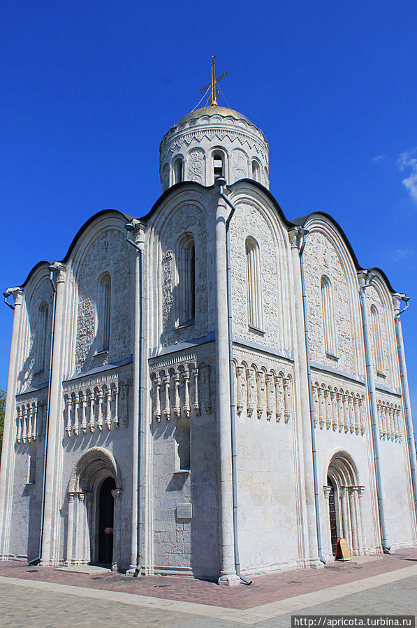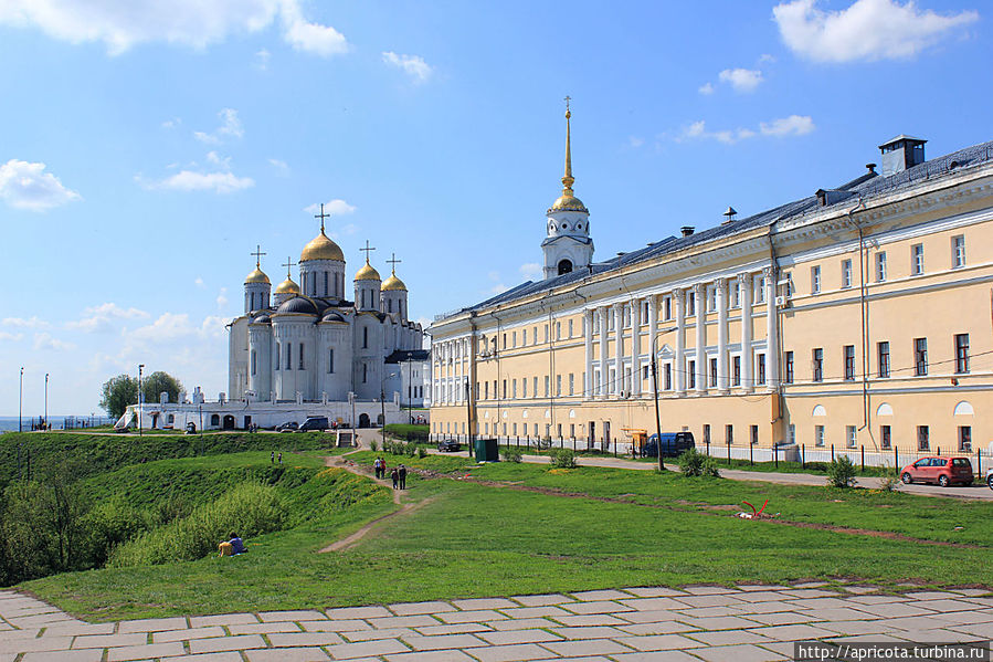Хочу немного сказать о соборе. Он выглядит более ухоженно, чем предыдущая Николо-Кремлевская церковь, и является памятником белокаменного зодчества и пластики Владимиро-Суздальской Руси. Собор был построен в 1193-1197 годах великим владимирским князем Всеволодом (Дмитрием) Большое Гнездо. Что касается смотровой площадки, с нее открывается вид на Успенский Собор на Годовой Горе.Собор находится на Соборной площади в нескольких шагах от Дмитриевского собора. Также на площади располагается монумент в честь 850-летия города Владимира. В основании стелы три фигуры — древний воин, который смотрит на Золотые ворота;зодчий, разглядывающий Успенский собор и рабочий, рассматривающий рабочие окраины города.