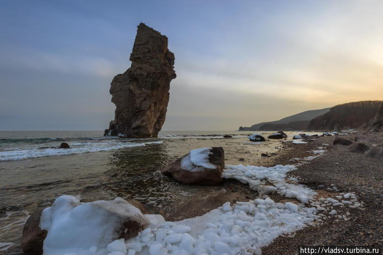 2. Поснимать бухту которая находится между мысом Четырех Скал и мысом Баратынского, со всеми тамошними кекурами и висячим камнем в придачу, да и вообще посмотреть- что там со льдами нынче зимой.