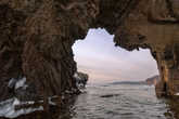 Дорога на площадку над мысом Четырех Скал, где мы всегда привыкли останавливаться, оказа-лась размыта, но вполне проезжа. Походив по вершине, решили воскресное утро снимать тут, на мысу. После этого спустились вниз, в бухту, и бродили по ней до самого вечера, благо погода была слегка плюсовая.