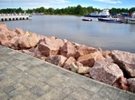 Перед территорией причала построены фермерские торговые павильоны, спортивные и детские площадки, паркинг для туристических автобусов, легковых автомобилей и велосипедов.