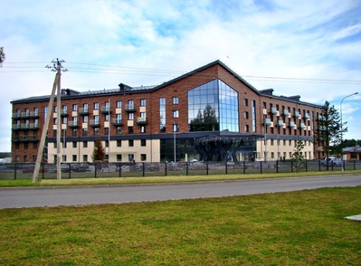 Очень красиво подобрана отделка здания мотеля с гранитными барьерами пирса из розоватого природного камня, дизайн молодого липового парка гармонирует со скверами территории мотеля.