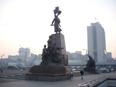 Вторая часть изображает рабочего, партизана, пулеметчика и солдата – посвящена освобождению партизанами Владивостока от японских интервентов.