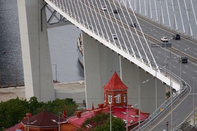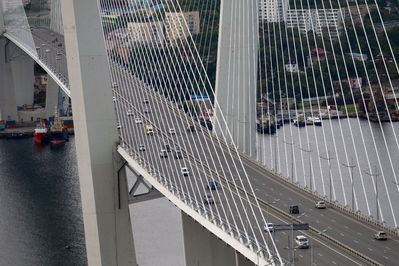 Со смотровой площадки Владивосток показался мне похожим на Сан-Франциско где-то в районе моста Голден-Гейт. Перед нами стоял невероятно величественный с иголочки сшитый в парадном костюме вантовый Золотой мост, возможно один из самых красивых мостов, которые я видел когда-либо.