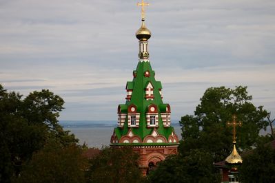 Мимо мелькают берега залива, иногда темно-синяя вода, пригороды и машины. Попавшая в кадр красивая церквушка заставила призадуматься о том, как благодаря освоению Сибири и Дальнего Востока начиная с 16 века далеко на восток продвинулось православие. А ведь когда-то это были территории язычников-анимистов и редких китайцев-промысловиков, которые шли в эти края ради редких растений и животных.