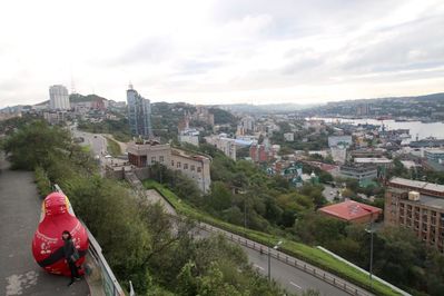 У нас в прошлом году была программа вместе со старыми знакомыми из WWF России поездок по нескольким заповедникам и национальным паркам юга Приморского края и мы собирались к определенному моменту во Владивостоке. Желая познакомиться с городом получше я и Женя прилетели более ранним рейсом Аэрофлота. Если не ошибаюсь мы опередили других членов нашей группы часов на 8, что вполне хватило на осмотр нескольких точек в городе, да и на общее впечатление о нем.