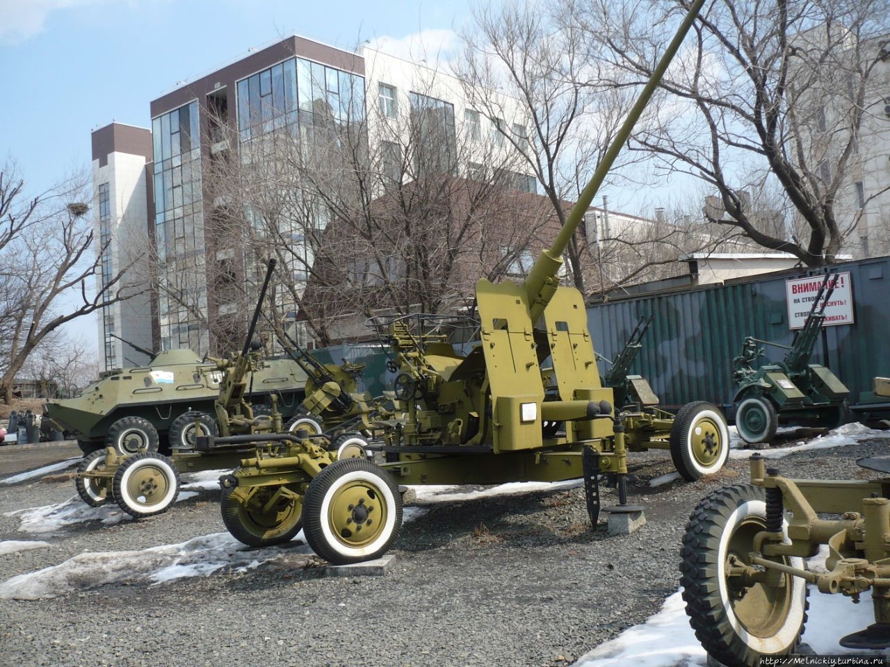 На улице выставлены образцы артиллерийского вооружения различных калибров 1930-1990 годов, строительная техника, применявшаяся на постройке крепости.