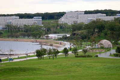 Очень много зелени вокруг и спортивной инфраструктуры.
