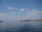 Проходим мимо берегов острова Русский. Сейчас здесь развернуто массовое строительство, уже построены международный деловой центр, несколько отелей, современный океанариум и тихоокеанский научно-образовательный центр.