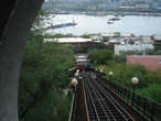 Задержитесь ненадолго около институтских львов, прочитайте памятные таблички на стенах. И вперед вверх в синем или красном вагончике на ваш выбор. А может быть вы захотите наперегонки с неторопливыми вагончиками по "лестнице здоровья"? Но все-таки лучше на фуникулере (прелестные фото из окна вагончика гарантированы). А наверху вас ждет чудо. И пусть вам не помешают наша порой такая вредная погода. И такую картинку фуникулера вы увидите только на моем фото)))