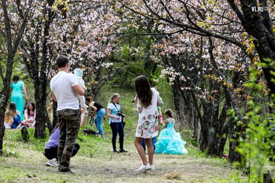 И, наконец, майское сопрано весенней симфонии. Во Владивостоке зацвели сады! А мы, поглощенные трудовыми буднями, чуть не прозевали это чудо. Но народ так массово рванул в белоснежно-розовую фотосессию, что и нас понесло туда этим потоком восторга.