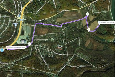 "А" — поворот с "Уссури" перед концертно-спортивным комплексом Фетисов Арена. "Е" — заброшенные сады ВИР