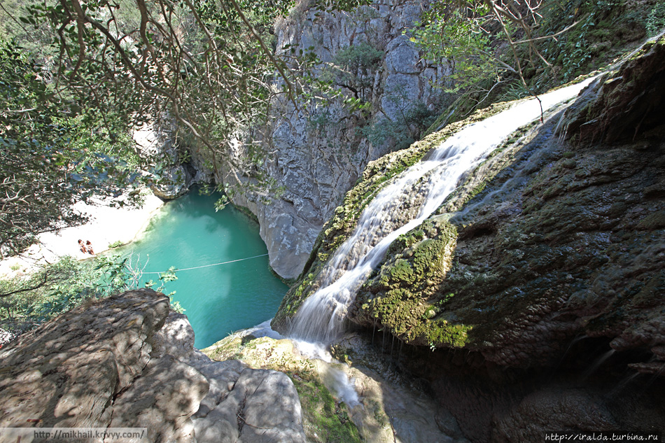 Без машины туда скорее всего не добраться.Мы ехали из Каламаты. Дорога в 35 км. пролегает по горному серпантину. Доехав до поселка Казарма надо свернуть южнее до деревни Харавги, откуда начинается пешеходная 3-км тропа по ущелью.