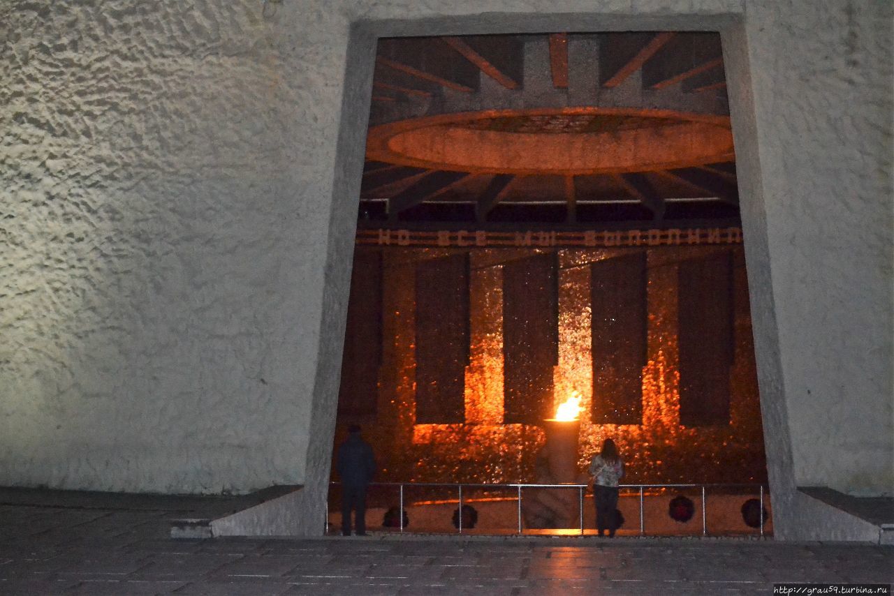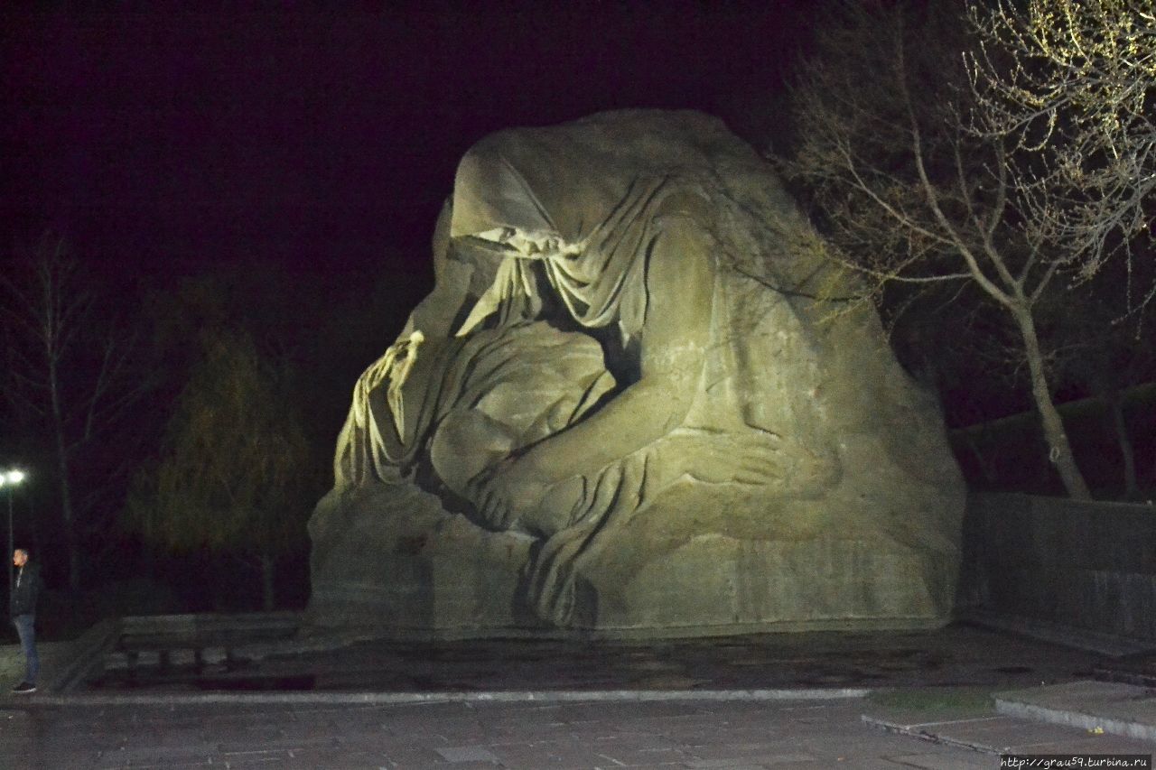Ночное неяркое освещение добавляет загадочности.Если будет возможность побывать на Мамаевом кургане ночью — обязательно ей воспользуйтесь.