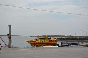 с цветочными шарами, проволочными скакунами, людьми, снимающимися на фоне больших шахмат.На набережной дети могут кататься вокруг знаменитого фонтана