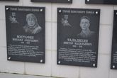 есть не только на доме, где он жил, но и на школе, где учился.В этой же школе учились друге известные люди.Михаил Петрович Теплов (1919 -2005). Хотя к званию Героя Советского Союза его представляли в далёком мае 1945 года, но присвоено оно было лишь 5 мая 1991 года.