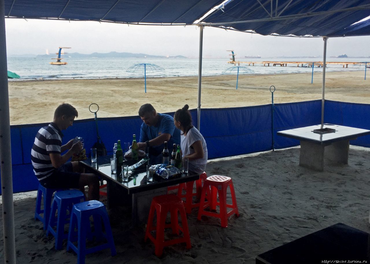 Пока большая часть группы смывала с себя дорожную пыль в теплом Японском море (которое в КНДР называют Восточным), трое товарищей на любезно предоставленных столиках "накрыли поляну" — пиво и таранку мы привезли с собой, благо, купить это в Северной Корее не представляло труда))).