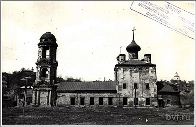 Прогулки по Воронежу. Алексеево-Акатов монастырь).Успенскую же церковь в 1694 году выстроили в камне и преобразовали в Адмиралтейскую. Здесь, в храме, благословлялись на подвиги в Азовском море первые корабли. Несколько церемоний провёл лично святитель Митрофан Воронежский, первый епископ города. По легенде, именно в Успенской церкви был торжественно освящен Андреевский флаг, как символ русского флота.
