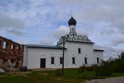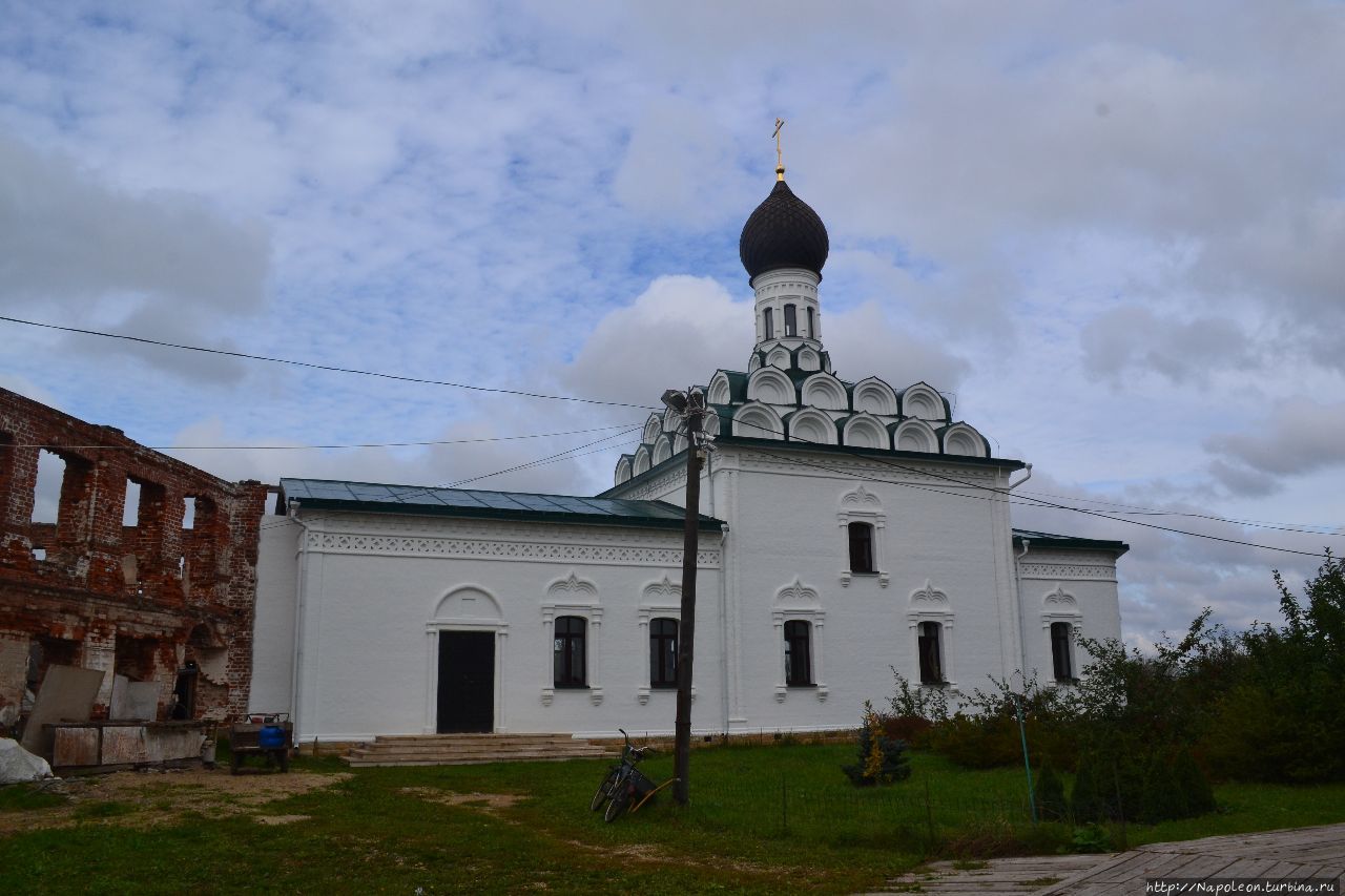 Спустя десять лет, в 1580 году в дополнение к церкви в обители были построены деревянные братские кельи и храм с двумя престолами: вверху в честь Святой Троицы, внизу во имя Казанской Матери Божией. Позже был возведен ещё один храм во имя преподобного Михаила Малеина, небесного покровителя первого русского царя из рода Романовых — Михаила Фёдоровича. Более основательное — каменное строительство в монастыре началось в конце XVII века при князе Михаиле Черкасском.