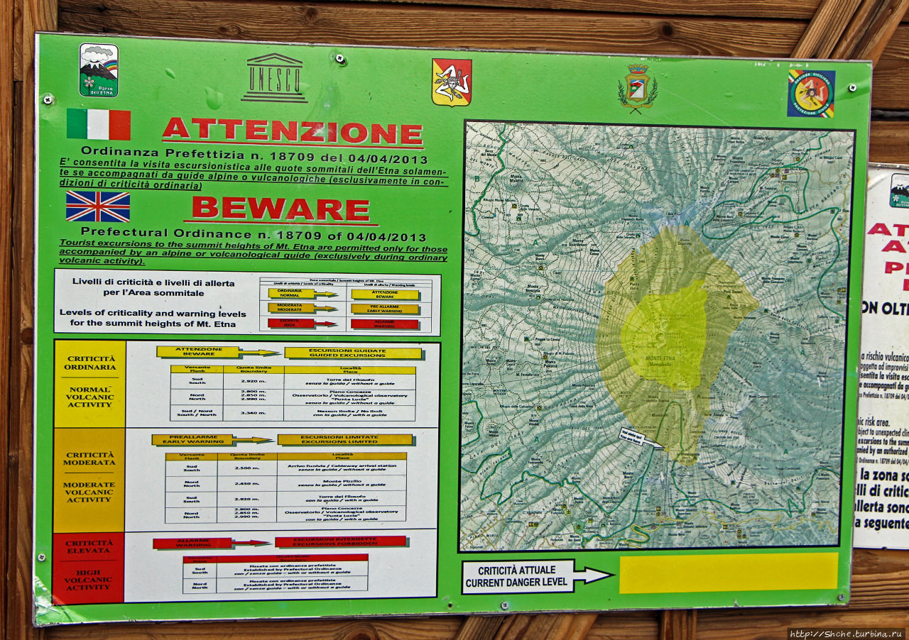 В принципе, забравшись сюда, уже можно сделать отметку по посещению вулкана. А что, по лаве погуляли, красоты насмотрелись... даже можно сфотографироваться возле такого вот щита (именно этот щит находится на верхней станции фуникулера, но есть и внизу)