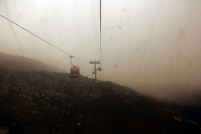 Тут можно добавить, что традиционно ближе к вечеру (а фуникулер работает только до 16-30, причем последний подъем в 16-00) на вершине становится очень облачно и видимость стремительно приближается к нулевой. Для сравнения, для покажу фото, которые я сделал на фуникулере по пути назад (и здесь не только дело в тонировке стекла, поверьте