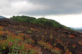 Серпантин по лаве продолжается примерно 18-20 километров. С подъемом в гору температура заметно падает, а природа вокруг заметно меняется.