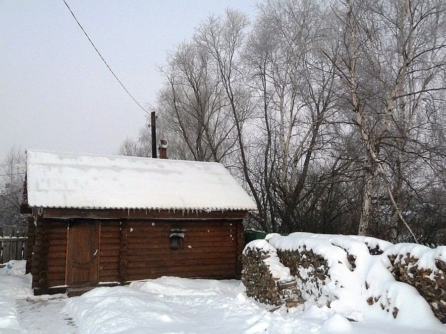 Конечно, вид "моей" немузейной баньки был намного прозаичнее. Зато, с поленницей!