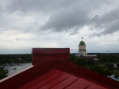 Детально осмотрев дом Говинга, мы продолжили прогулку по старинному городу, а точнее — по его крышам. Выборг, в котором я бывала очень много раз, выглядит с крыши совершенно с иного ракурса.