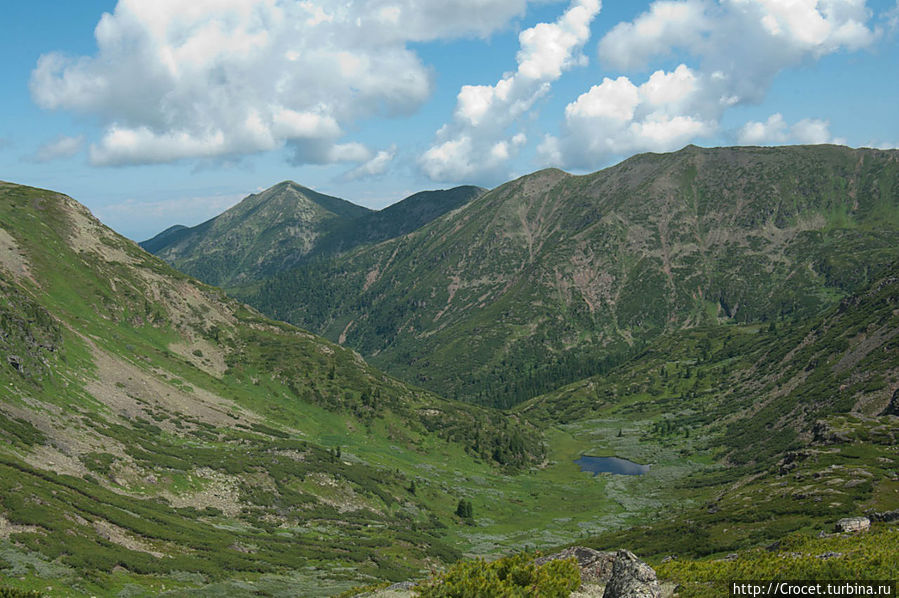 Внизу, в долине видна наша следующая цель, река Снежная.