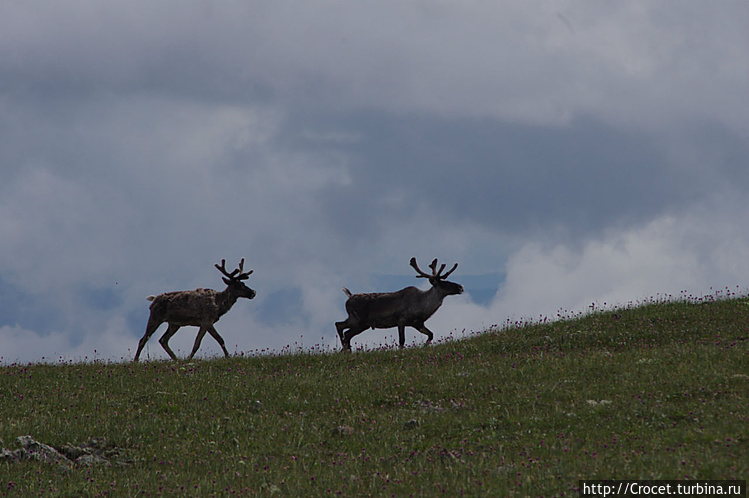 Сегодня было ощущение, что сходили в мини-зоопарк, нам на пути встретились три медведя, которые лезли на хребет нам на наперерез, но почуяв нас, они ретировались обратно в низ, сфотографировать их не удалось (в этой экспедиции в общей сложности мы встретили семь медведей.). После медведей нам попались сибирские лоси. Они очень долго нам позировали, бегая из стороны в сторону.