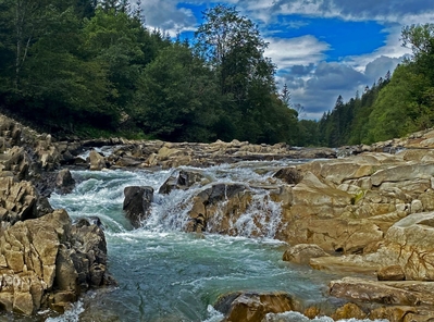 ... уходя вверх по ее течению, постепенно углубляется в девственный карпатский лес (первые фото материала сделаны именно там).