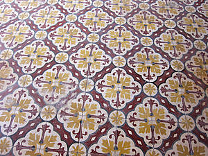 Спустилась по лестнице. Обратила внимание на плитку: для реставрации придется обращаться на ту самую фабрику.