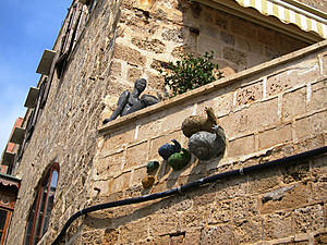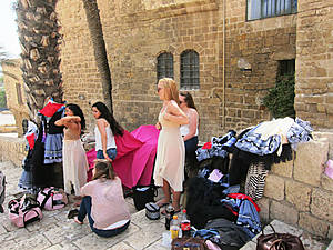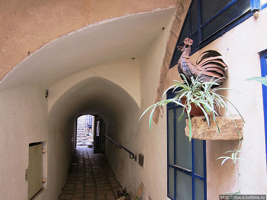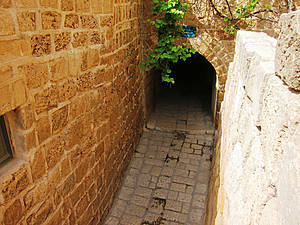 Обязательно зайти в лавочку на втором уровне: когда-то меня привлекали туда яркие изделия из полимерной глины, но пару лет назад хозяйки захотели расширить подвал, и обнаружили старое здание круглой формы. Расширение на время раскопок пришлось отложить. Археологи докопались аж до бронзового века. Самые ценные находки уехали в музей, но и магазину кое-что перепало. Теперь у тут своя мини-выставка.Со второго уровня перехожу на третий. Тут большей частью жилье. Магазинчики только на улицах, ведущих наверх. Зато если пройти по 3-ей линии направо до конца, то увидите дом Симона – кожевника. Тот самый, на крыше кторого св. Петр увидел полотно, нисходящее с неба. Увы, дом частный и посетителей не принимает даже в день открытых дверей. Ну, а четвертый уровень – это главная улица старого Яффо, которую не пропускает ни один турист.