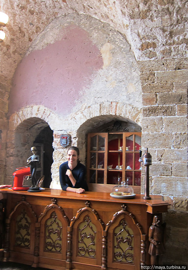 В глубине первого зала присел хозяин этого заведения Андрей, а его жена Ольга за буфетной стойкой. "Я посижу пару минут, пока народ соберется?" – спросил Андрей, группа только что ушла. Да, пожалуйста, я пока попью чаю. Я села за круглый столик, за соседний столик сели только что подошедшие две пары "не русских" соотечественников. Пока мы пили, Андрей начал рассказывать о недавно проведенной выставке в этом театре – кафе. А потом немножко о себе: сам он актер и режиссер, а Оля – актриса. Поставил и сыграл с женой пару удачных спектаклей на сцене "Сюзан Далаль". И решили найти для театра свою площадку. Вот в этот подвальчик влюбились сразу. Раньше тут был известный клуб Данжен, который закрыли из-за жалоб на шум. Спросила, не боятся ли они вкладывать столько денег на ремонт чужого имущества?