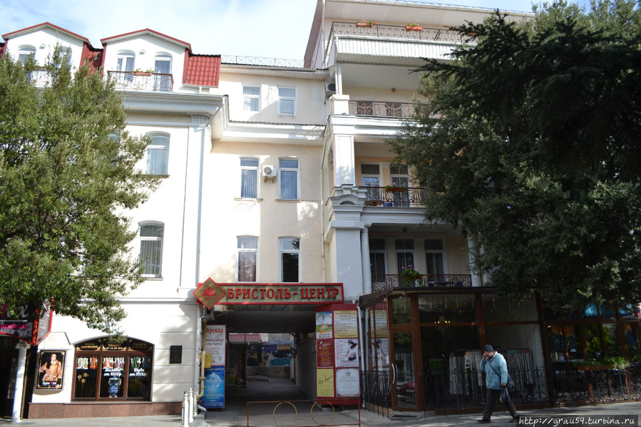 А через 6 лет, уже будучи писателем, останавливался в гостинице "Центральная" на улице Бульварной (ныне гостиница "Бристоль") напротив морского вокзала и порта. Приехал он сюда 16 января 1897 года на пароходе с супругой Екатериной Павловной Пешковой (урождённой Волжиной, 1876 — 1965).