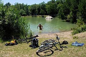 Проезжая мимо небольшого озера, не смогли удержаться чтобы не окунуться.