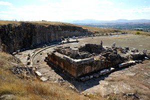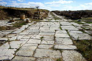 Мы сразу ступаем на мощеную улицу Декаман Максима и, провигаясь по ней, слева видим амфитеатр Амфитеатр вмещал до 5000 зрителей и по предположению историков здесь была отдана на съедение диким зверям Св. Фекла.Далее мы выходим на улицу Кардо Максима которая заканчивается нимфеей — святилища с нишами и фонтаном. Фонтан обеспечивал водой весь город и соединялся с акведуком длиной 10 — 11 км.