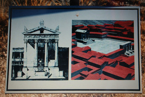 в конце которой ( на снимке ближе к нам) стоял пропилен ( триумфальная арка). Двенадцать ступеней поднимали жителей на площадь Августа к храму, посвященному Октавиану Августу.На этом снимке изображена реконструкция пропилена и площади Августа