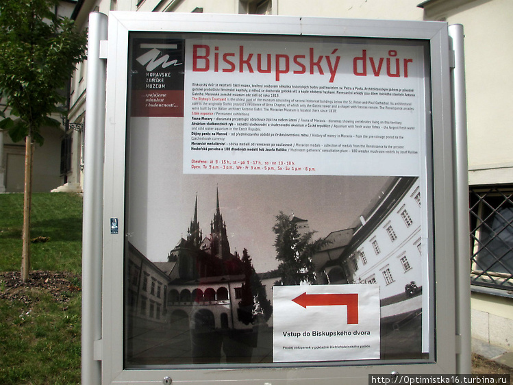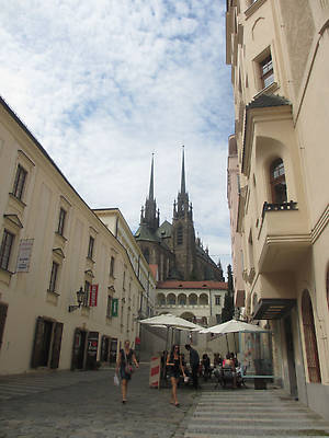 Побывав на площади Капуцинов, мы пошли по направлению к Епископскому дому (Biskupský dvůr), который считается одним из самых известных памятников архитектуры в Брно. Над его аркадами очень красиво возвышается кафедральный собор..