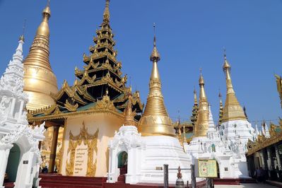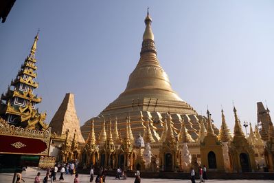 Пагода Шведагон 98 метровая позолоченная ступа в Янгоне, название происходит от древнего названия города Янгона. Самая почитаемая пагода в Мьянме, по преданию содержит реликвии четырёх Будд, посох Какусадхи, водяной фильтр Конагаманы, часть туники Касапы, и восемь волос Гаутамы. Пагода находится в центре города, вход платный.