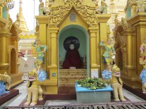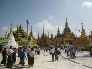 От себя расскажу только как я впервые узнал о его существовании. Дело было на первом курсе. В декабре 2005 года, в предпоследнюю пятницу был зачет по истории искусства. Я долго думал о каком бы объекте рассказать, смотрел всякие книжки в библиотеке старого корпуса исторического факультета МГУ в каталоге по слову "искусство" и неожиданно нашел там книжку "Архитектура Бирмы" 1970 года издания. Там-то я впервые в жизни и прочитал про Шведагон и рассказал преподавателю, чем очень удивил его. Потом прошли годы и однажды в ноябре я наконец-то добрался до этой пагоды. Билет стоил 5$, обувь надо сдавать, ноги после прогулки жутко грязные.