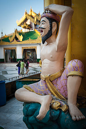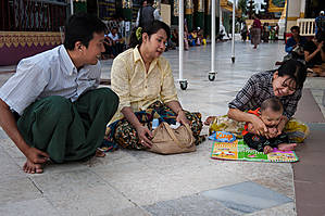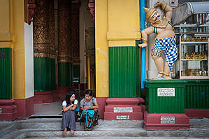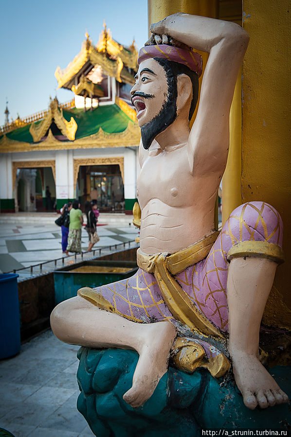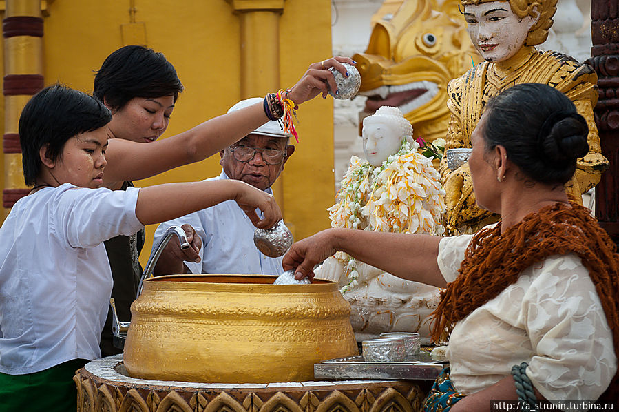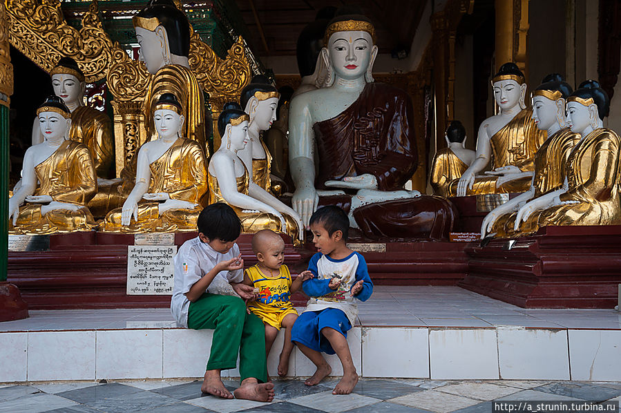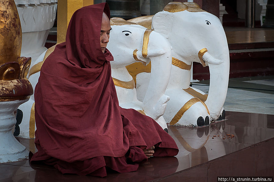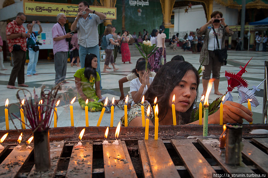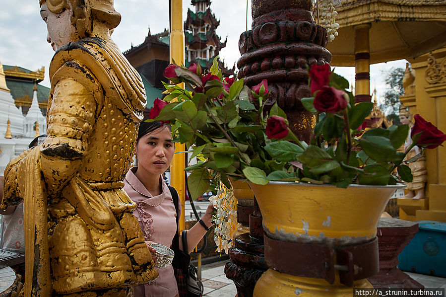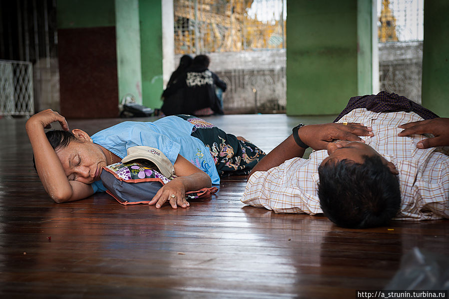 С раннего утра и до позднего вечера сюда тянутся люди. Приходят группами, по одиночке и целыми семьями. Совершают свои диковинные обряды и, получив заряд просветления, возвращаются к своей тяжелой мирской жизни. А некоторые проводят на территории Шведагона весь день, умудряясь здесь же и перекусить, и поспать. Это не возбраняется. Буддизм вообще очень мягкая, если можно так сказать, религия. В ее основе лежит осознание того, что вся человеческая жизнь состоит из страданий. И не стоит их приумножать ненужными запретами и ограничениями. Для буддистов храм – это самое комфортное место, и именно для того, чтобы остаться наедине со своими мыслями и Буддой, попытаться хоть на миллиметр приблизиться к заветной нирване, когда уже ничто и никто не будет тебя огорчать и беспокоить. И так изо дня в день, на протяжении тысячелетий…