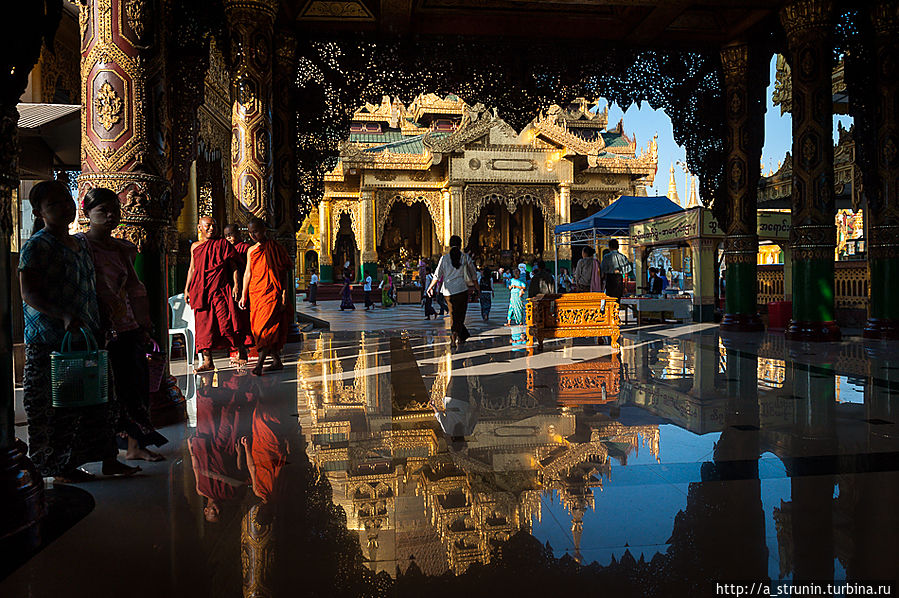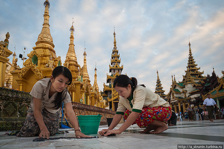 С заходом солнца Шведагон пустеет. Но его золотая ступа продолжает сиять в свете прожекторов над древним Янгоном. И хочется думать, что этот свет предназначен не только для туристов, чтобы как-то украсить мрачноватый и бедный город, а является своего рода светом надежды для его обитателей. Надежды на то, что следующий день будет обязательно лучше прошедшего.