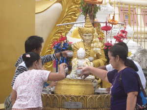 В одном месте местные поливали водой из чашечек совсем маленькую статую Будды, делали они это с явной любовью и старанием. Их вера глубока, они уже рождаются с ней, приняв её ещё в утробе, также как и доброту с молоком матери. В этой стране вы не встретите грубости и даже малого неудовольствия, не говоря уже об оскорблении или того хуже, преступности. Эти пороки мьянмарцам неведомы, только добро готовы творить изо дня в день.